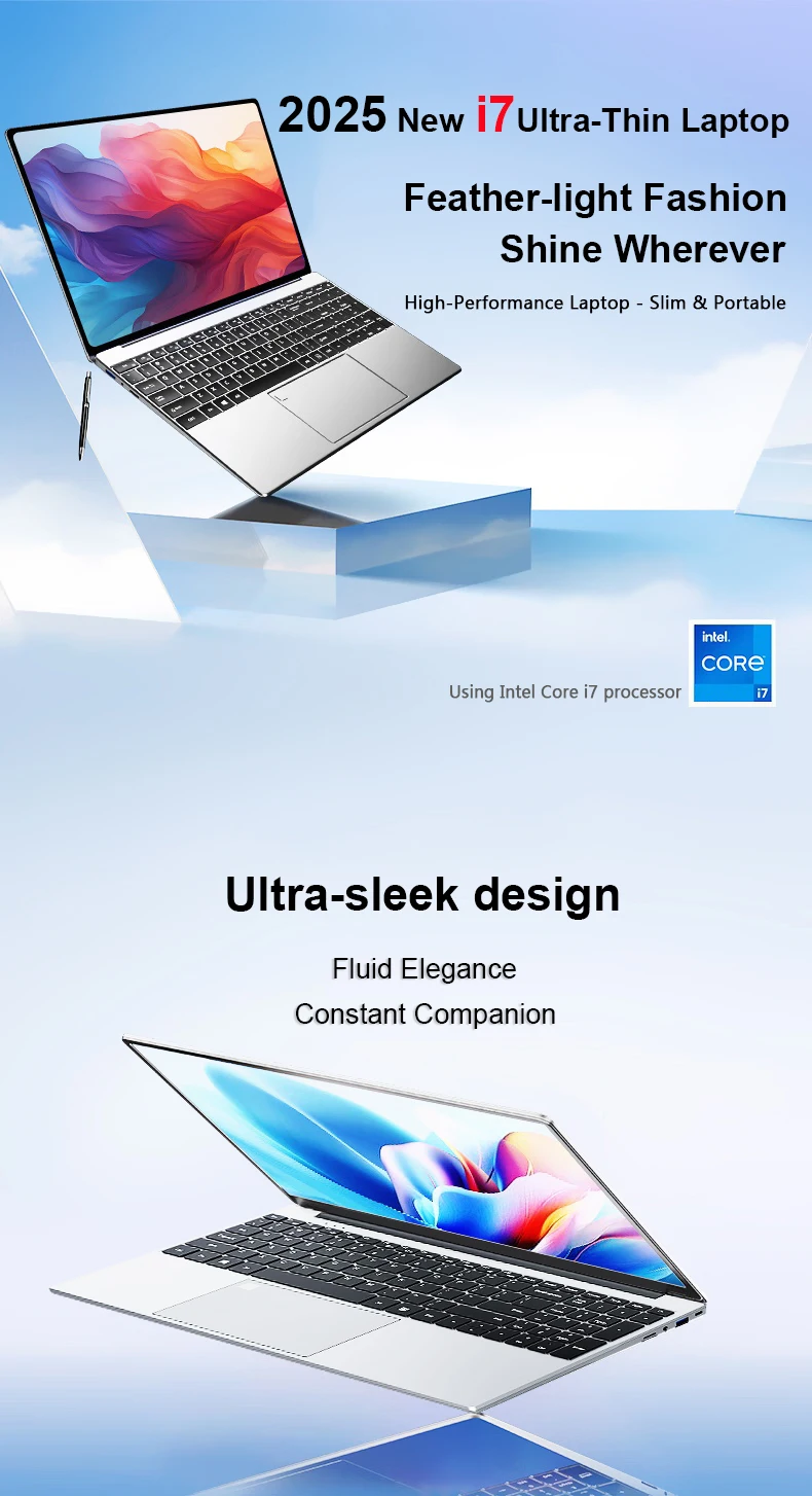 2025 Windows 11 Laptop Computer Intel Core i7 8500Y N4000 Ultra-thin Notebook 16GB RAM 1TB 2TB SSD 15.6" Fingerprint Unlock PC
