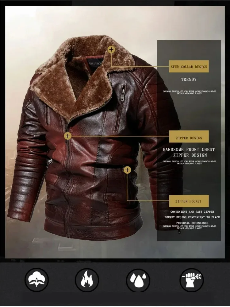 With its moto-inspired design, this jacket exudes a casual yet stylish vibe, perfect for bikers and fashion-forward individuals.