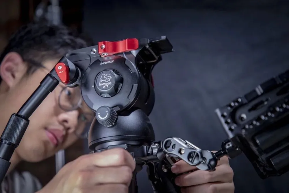 IFOOTAGE Video Camera Tripod Fluid Drag Pan Head with 1/4" and 3/8" Screws Sliding Quick Release Plate for Canon Nikon Sony DSLR