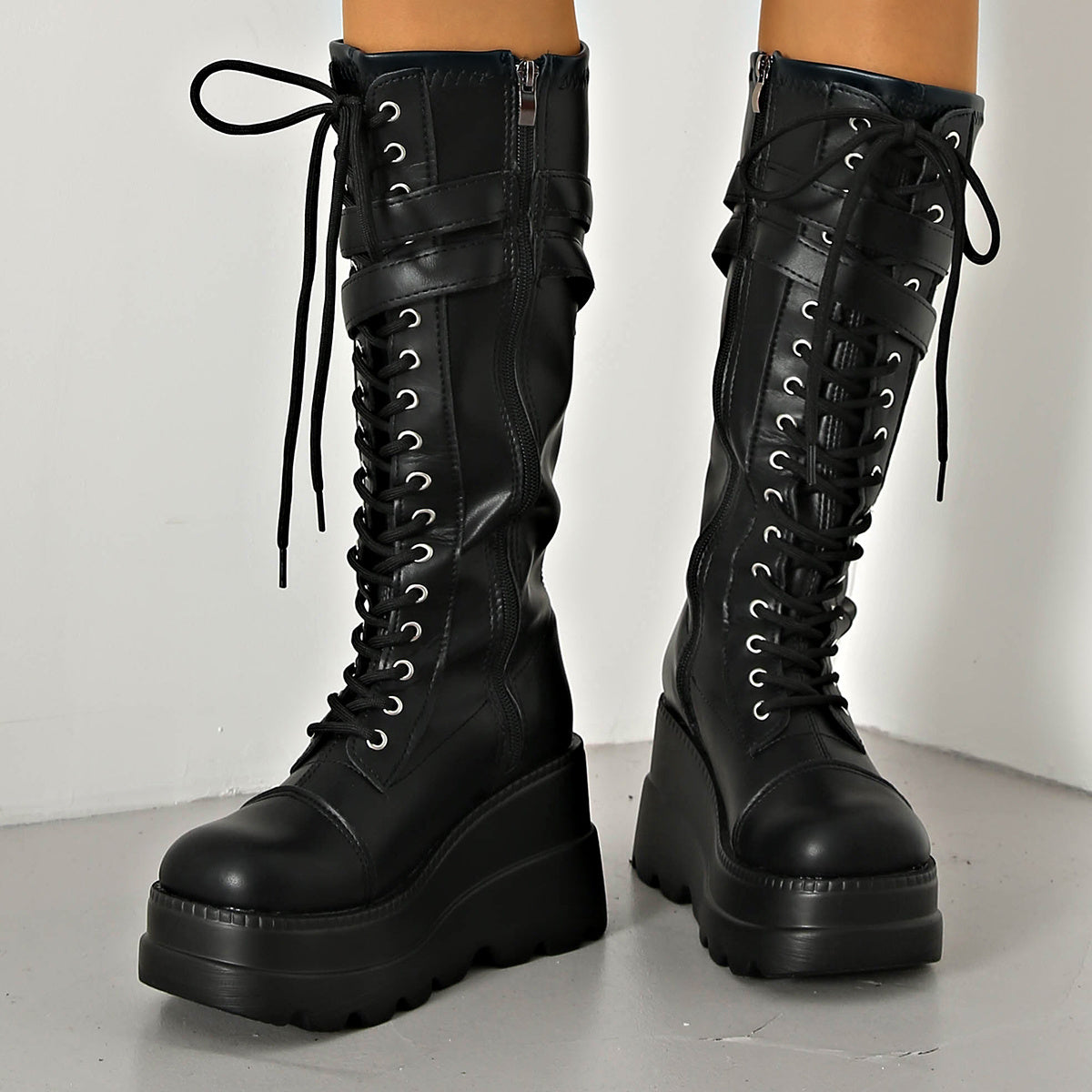 iH2 Women's Winter Platform High-Heel Boots - Thick Platform Wedge (Up to 4cm) with Back Zipper Closure, Round Toe Faux Snow Boots, TPR Sole & Fabric - Dress Boots for Dresses/Coutfits (European/American Style) - Heavy-Duty