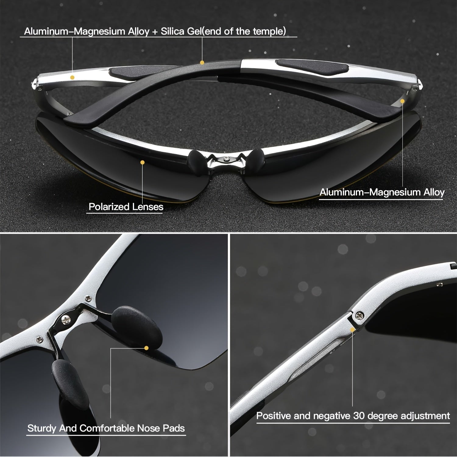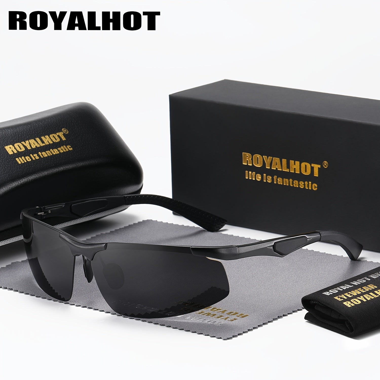 RoyalHot Men's Premium Aluminum Magnesium Polarized Fashion Glasses Driving Fashion Glasses with Golden Frame & Dark Tinted Lenses, Includes Case & Microfiber Cloth for Hiking Running Fishing, Outdoor Eyewear, Sleek Design, L