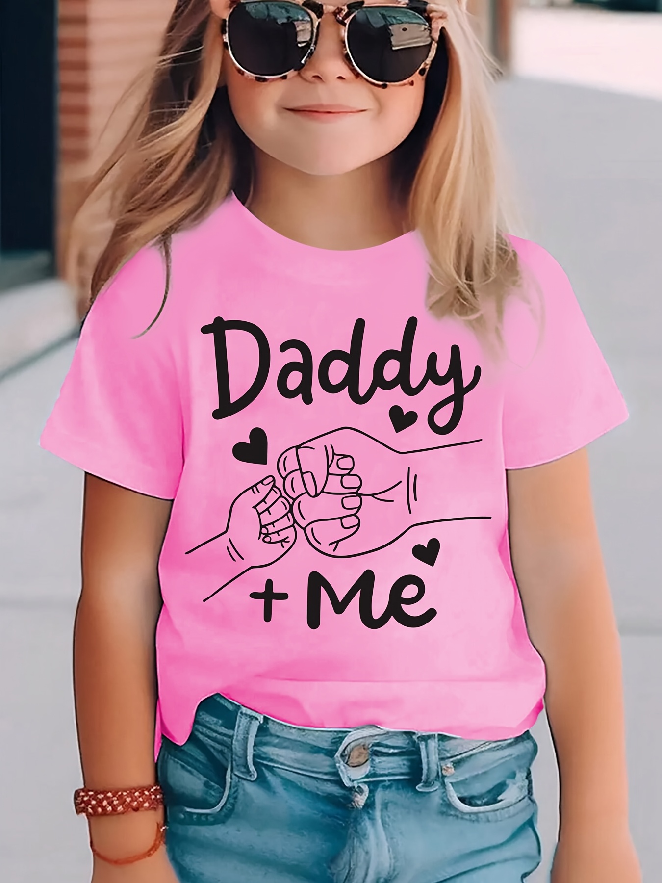 Summer Fashion Girls' Short Sleeve T-Shirt with "Big Fist Meets Little Fist" Daddy + Me Letter Print Casual Top NYDX4322