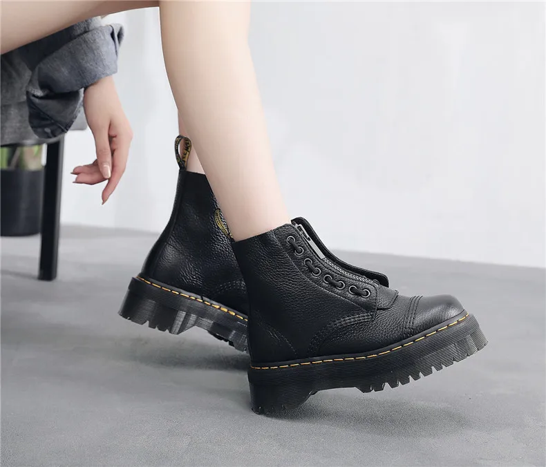 Women Boots Genuine Leather Platform Boots Motorcycle Shoes Front Zipper Optical Soles Fashion Sexy Punk Men Winter Boots 35-44