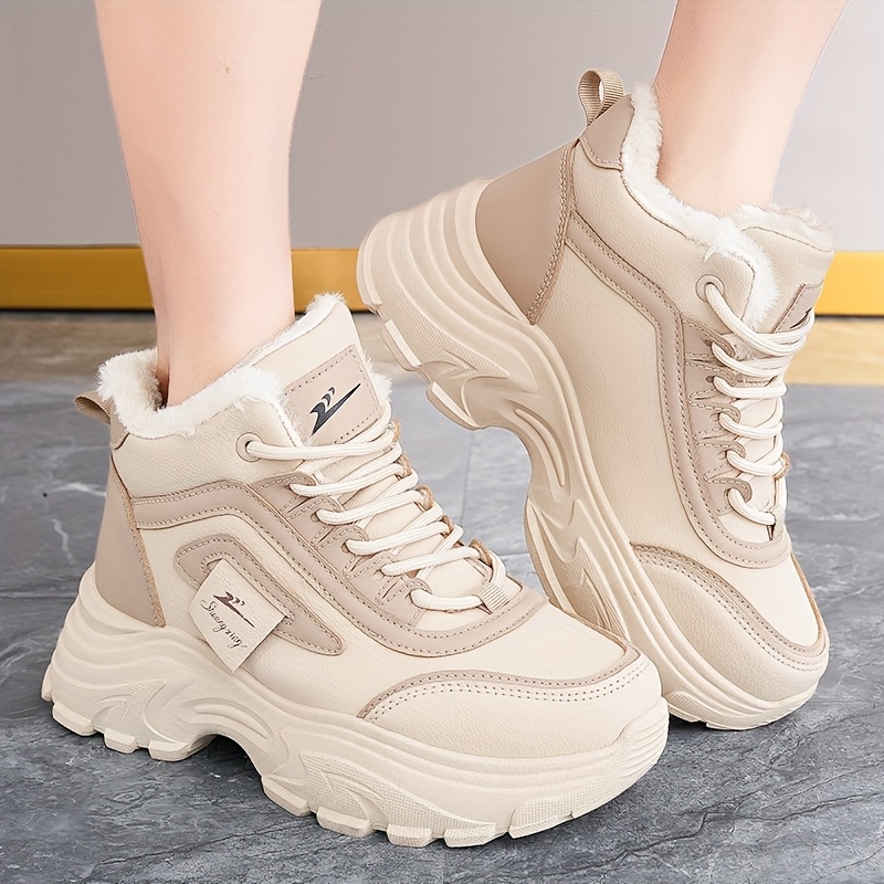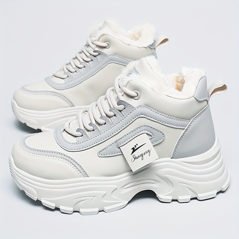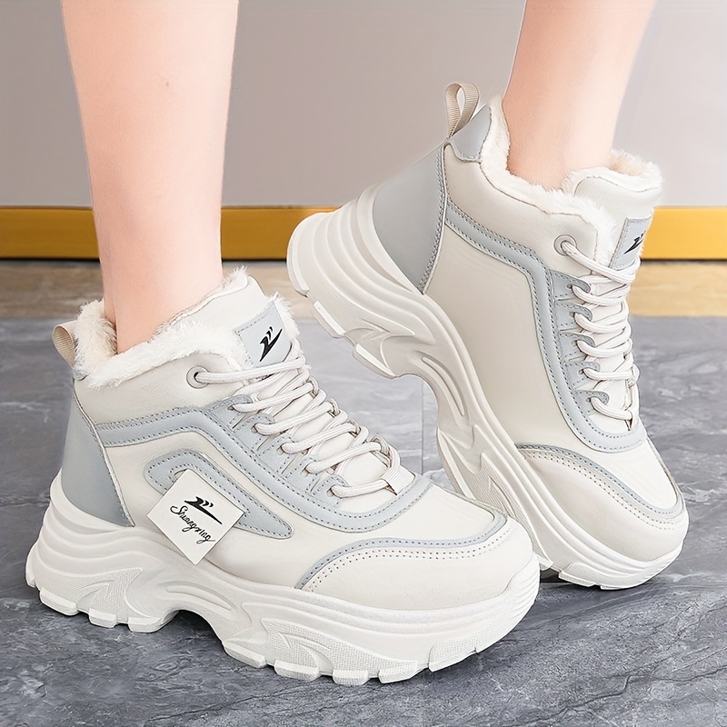 Women'S Winter High-Top Sneakers - Thick Platform Shoes with Cushioned PVC Sole, Lace-Up Closure, Non-Slip Traction - All-Season Everyday & Formal Shoes - Synthetic, Ladies Sneakers, Casual Footwear, Durable Footwear, Office